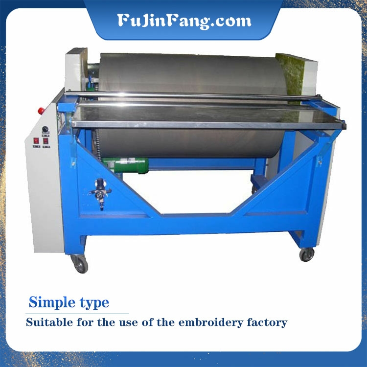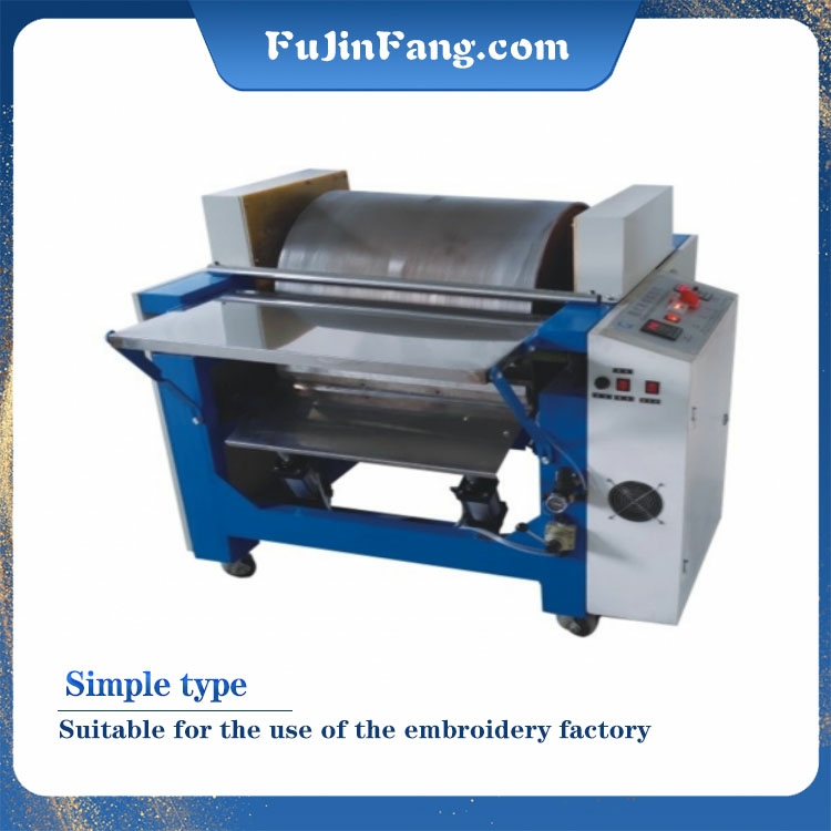 This is a fusion film equipment for post-treatment of embroidery. Its working principle is that the embroidery with hot-melt adhesive film will be automatically pressed onto the roller after being heated, so that the embroidery is clean without residue. It has the functions of automatic crushing (full automatic), water-cooled roller (full automatic), automatic cloth spreading, automatic cloth pulling, automatic cloth placing, ironing edge shovel (full automatic), automatic glue stripping, etc. This machine is simple in design, simple in operation, clean in stripping, efficient in production, and can effectively ensure that the fabric will not shrink, discolor, shrink, and discolor.