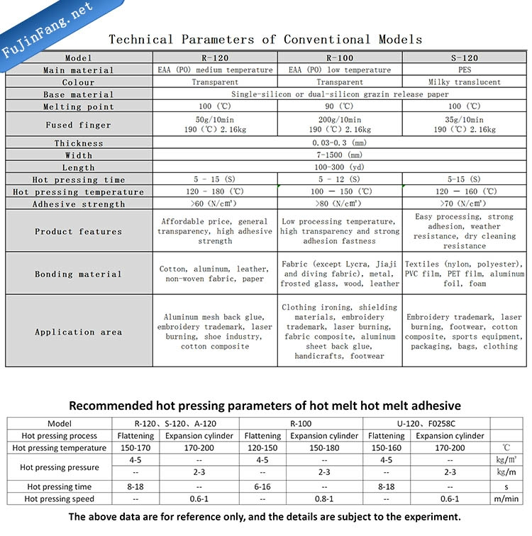 1. Used for all kinds of embroidery, printing trademarks, embroidery badges, PVC, leather adhesive: PP, PE and other plastic adhesive;