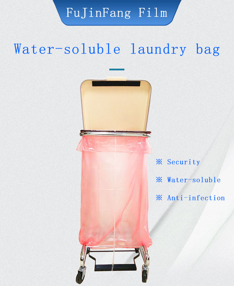 The special laundry bag for hospital infection department belongs to the medium temperature water soluble film (also known as medium soluble film and hot soluble film). The general dissolution temperature is 40 ℃.