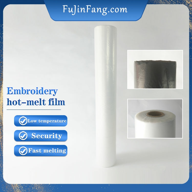 Embroidery hot-melt adhesive film, produced with 100% PE new material and special blowing and pressing film technology, is a new product that replaces the traditional non-woven fabric (paper lining). Now, it has been fully used in the domestic computer embroidery industry to replace the paper non-woven fabric processing. It solves the problem that the paper lining is not easy to be peeled off and the finished embroidery product is easy to wrinkle after being peeled off, which makes the product defective, time-consuming and unattractive. It can completely solve the above problems. The production specifications are flexible and changeable, the thickness can be produced between 0.02mm and 0.12mm according to the number of stitches, the range can be made between 500mm and 2100mm according to the width of the embroidery machine, the length can be produced by customers (generally less than 500 yards), and the quality level can be produced according to the quality of the embroidery product and the needs of environmental protection, The color can be transparent, white, gray, black, red, green, yellow, blue, green and other colors according to the embroidery color. The appearance is divided into embossing on the front and light on the back, and light on both sides (double light is not recommended).